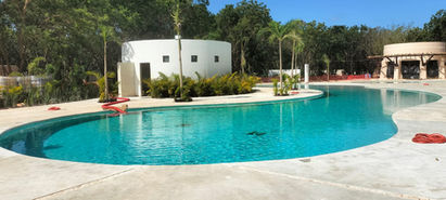 Una joya arquitectónica moderna con el encanto del chukum en Yucatán. Su arquitectura contemporánea se distingue por líneas limpias y espacios abiertos que se integran armoniosamente con el entorno. Los acabados en chukum, una técnica ancestral maya, aportan una textura natural y un color cálido que realza la belleza de la construcción. Este material, además de su innegable atractivo estético, brinda beneficios como frescura en el interior y durabilidad.